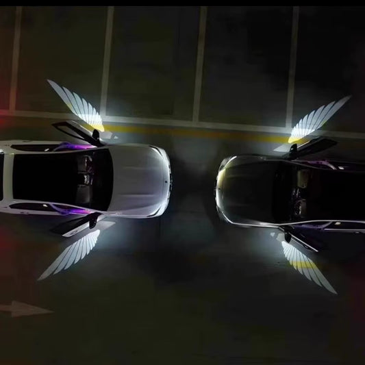 Wireless Car Door LED Welcome Projector Lamp - 2 Piece Set with Angel Wings Logo Light for Vehicles